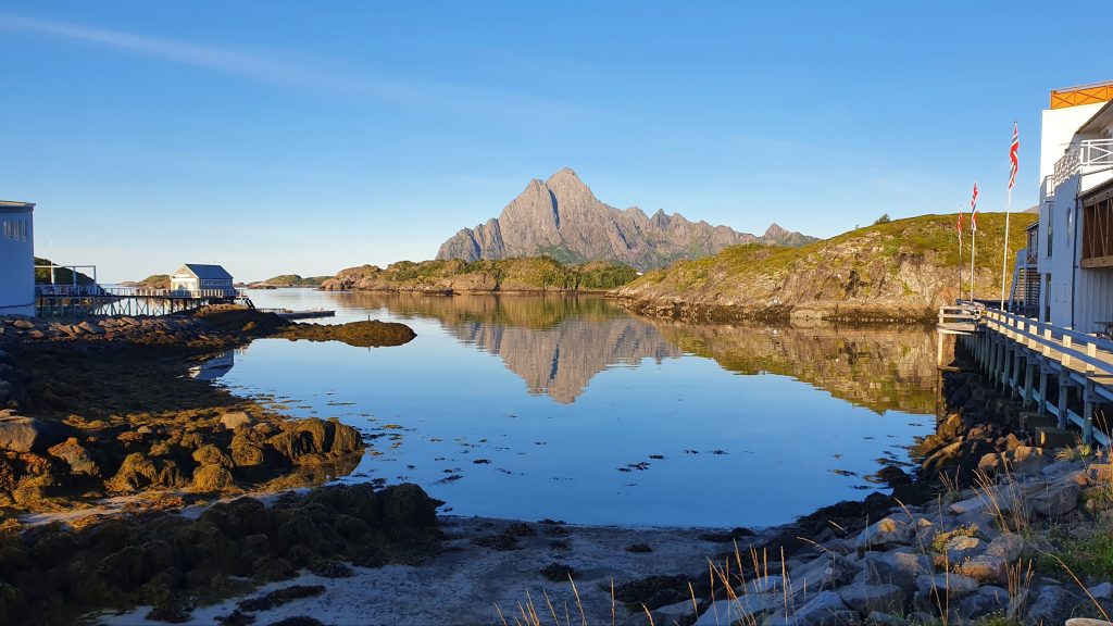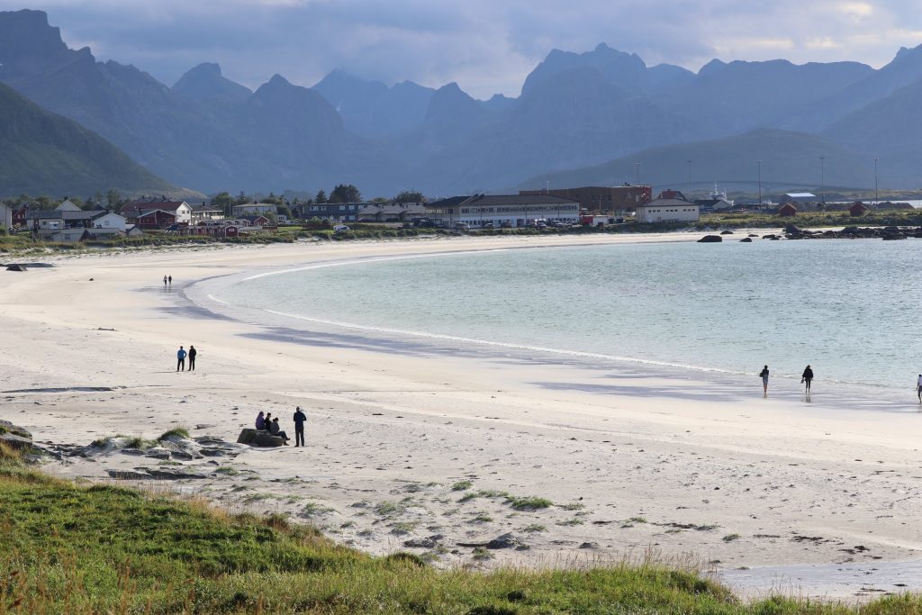 costa alta delle Lofoten con salita al monte Hoven e spiaggia di Hauckland
